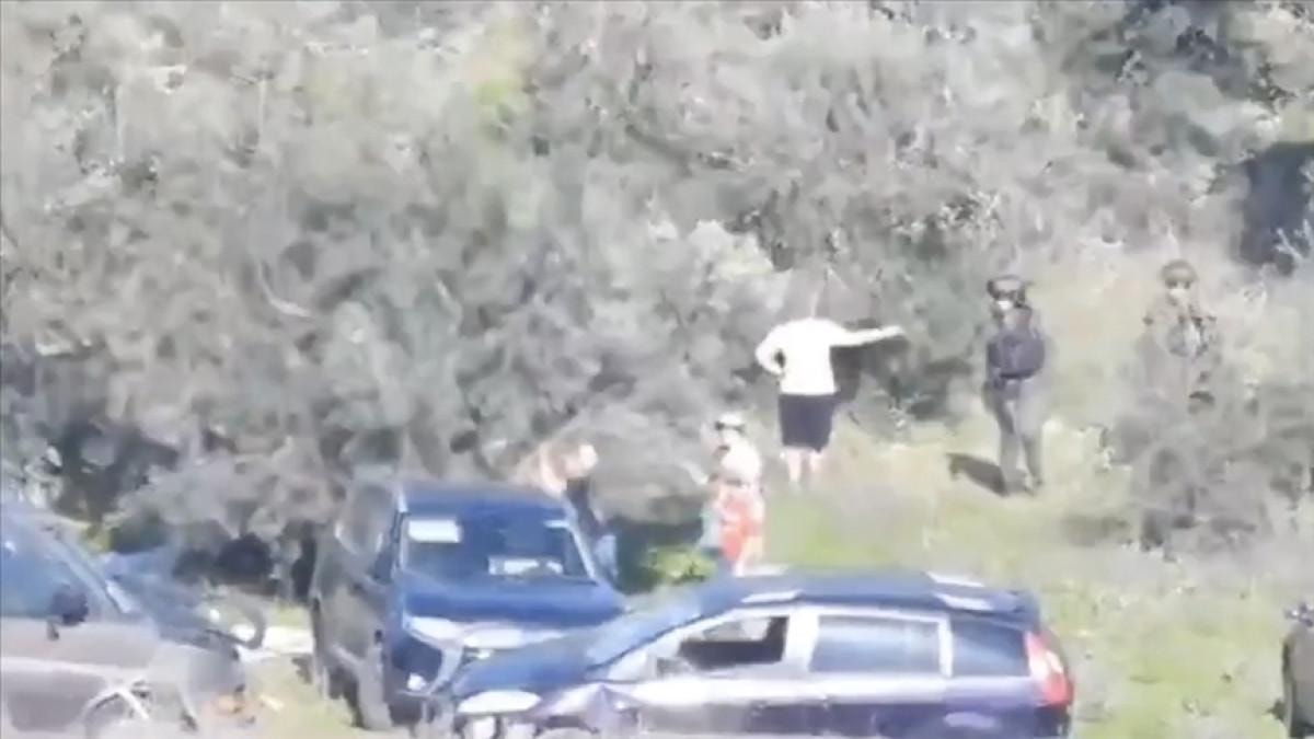 Onlarca Yahudi yerleşimci, İsrail güçlerinin koruması altında, Filistinlilere ait bir zeytinliği basarak Filistinli çiftçilerin mahsullerini çaldı, ardından zeytin ağaçlarını kesti.