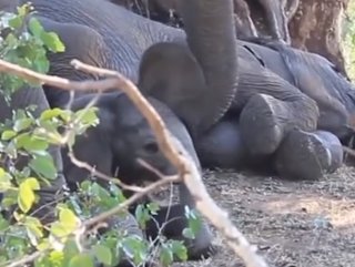 Yavrusunu şefkatle uyandıran anne fil İZLE