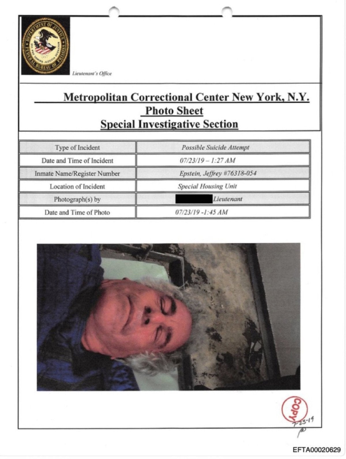 Yeni erişilen kayıtlar, Epstein'in 23 Temmuz 2019'da Metropolitan Correctional Center'daki (MCC) hücresinde baygın bulunduğunu yazıyor.