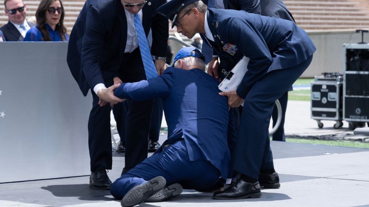 80 yaşındaki Biden, katıldığı ABD Hava Kuvvetleri Akademisi öğrencilerinin mezuniyet töreninde sahnedeyken yere düştü.