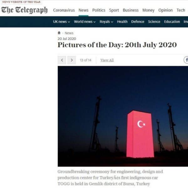 İngiliz gazetesi The Telegraph, yerli ve milli otomobil TOGG'un üretileceği fabrikadan bahsederek günün en önemli gelişmeleri arasında servis etti.
