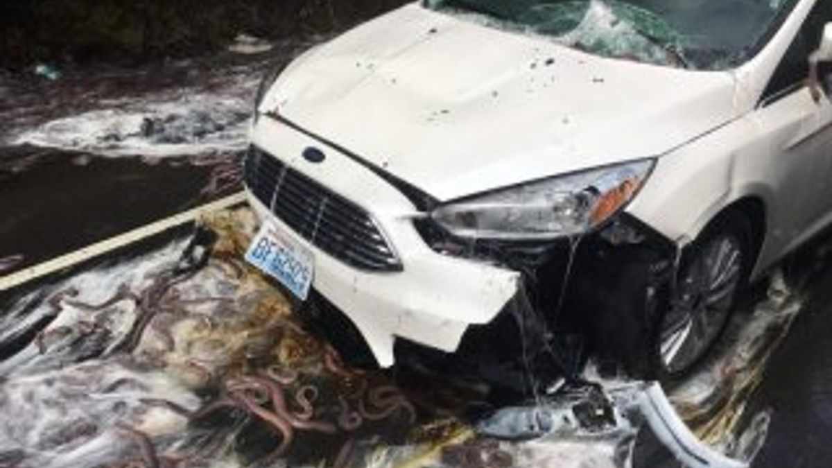 Polisin Twitter hesabından yapılan açıklamada, hiçbir yaralanmanın olmadığını belirtilirken yılan balıkları ile kaplanmış araçların ilginç görüntülerine yer verdi. Oregon polisi yılan balıklarının Kore'ye gönderilmek için gemiye bindirilmek üzere yola çıktığını açıkladı.