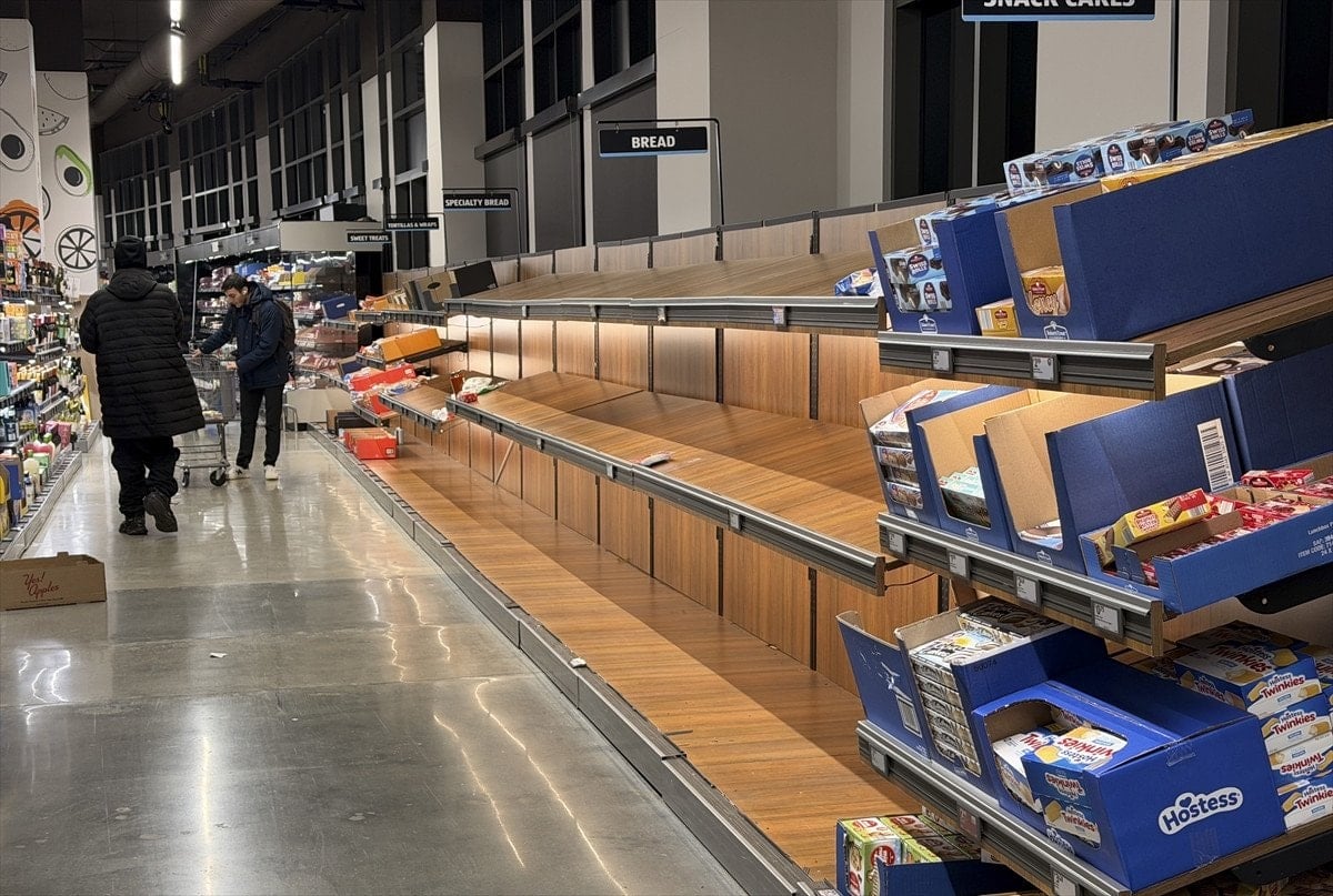 - ABD'de yoğun kar ve dondurucu soğuk beklentisi üzerine süpermarket rafları boşaldı.