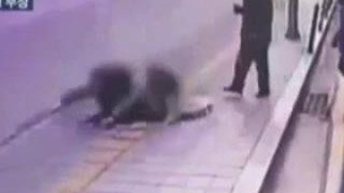 Yolun karşısına geçmek isteyen çift bir anda gevşeyen kaldırım taşlarına basınca kendilerini yerin dibinde buluyor. 3 metre yükseklikten düşen iki genç olayı hafif sıyrıklarla atlatıyor.