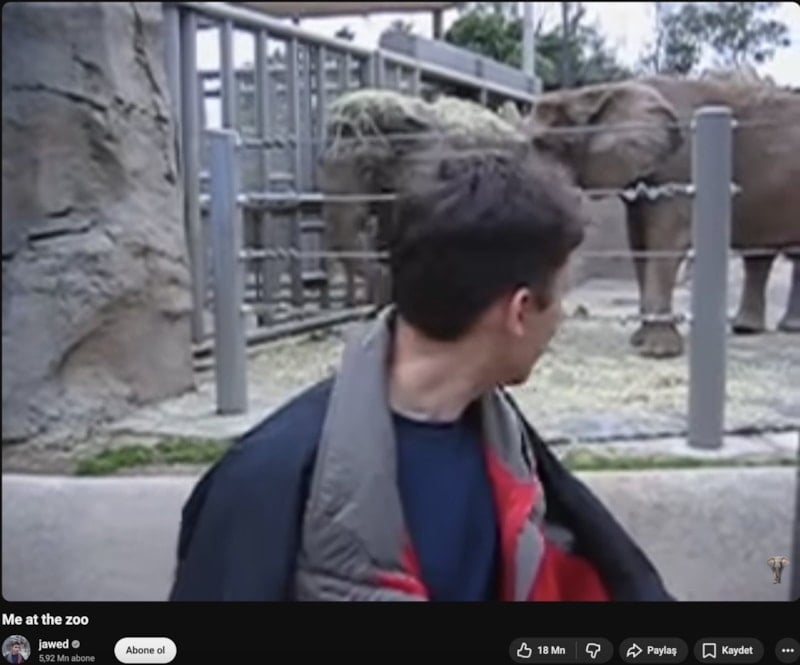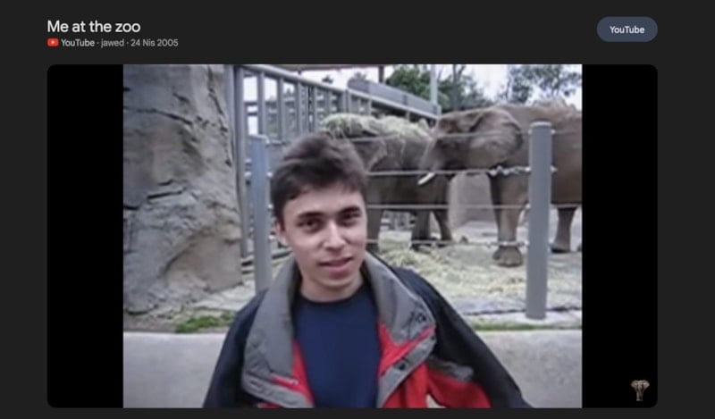 San Diego Hayvanat Bahçesi'ndeki filleri konu alan "Me at the zoo" (Ben hayvanat bahçesindeyim) başlıklı 19 saniyelik klip, 23 Nisan 2005 tarihinde paylaşıldı.