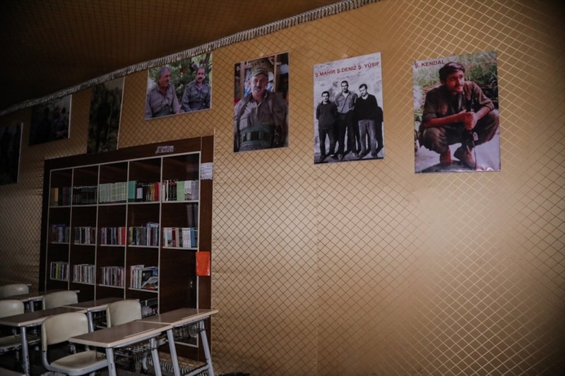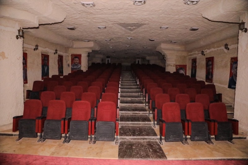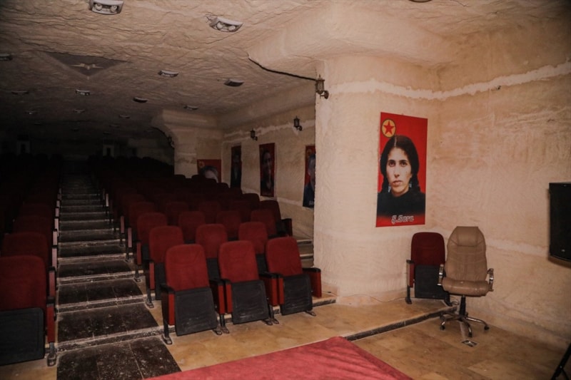 Örgüt sembolleri ve afişlerinin yer aldığı "yer altı şehri" içerisinde sinema salonu, amfi ve fırın da yer alıyor.