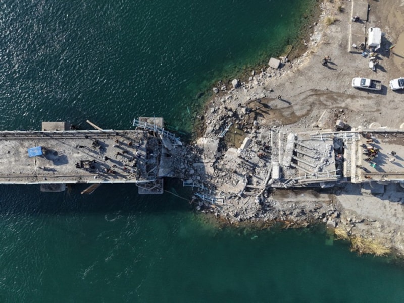 Hac, "Yaklaşık 3 gün önce SDG terörist milisleri gördüğünüz bu köprüyü havaya uçurdu. Bölgede büyük zorluklar var ancak birlikte buraları yavaş yavaş yeniden inşa edeceğiz" şeklinde konuştu.