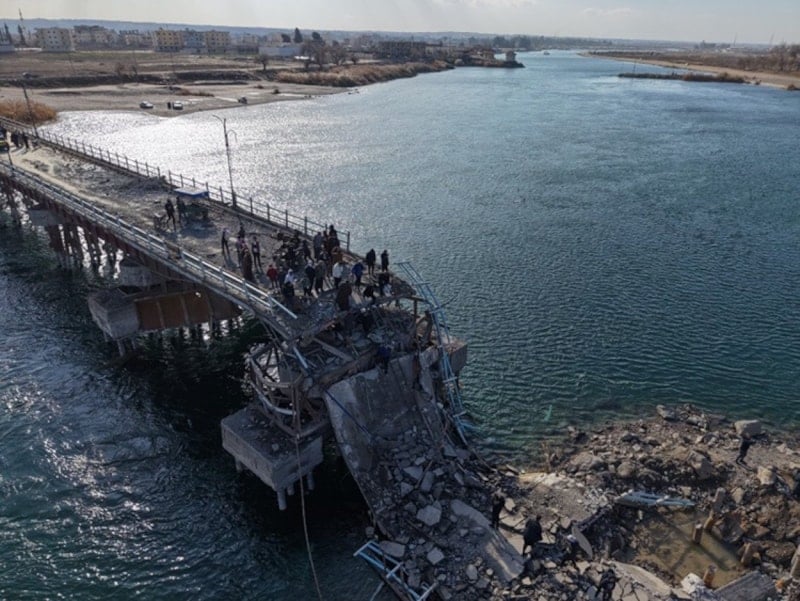 Terör örgütü YPG/SDG, Fırat Nehri'nin batısında işgal altında tuttuğu Tabka kentinden çekilirken bölgenin iki yakasını birbirine bağlayan köprüleri patlattı ve su hatlarına büyük zarar verdi.