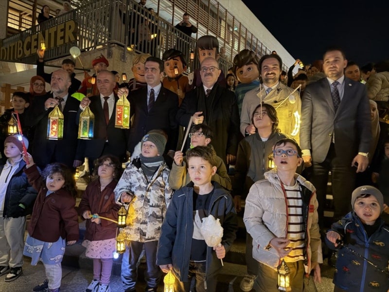 YTB tarafından organize edilen Fener Alayı’nda yüzlerce çocuk, ellerindeki renkli fenerlerle cami avlusunu ve sokakları bir bayram yerine çevirdi.