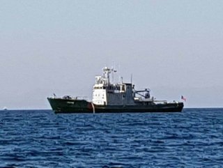 Yunanistan'ın Sisam Adası'ndan hareket eden Yunan askeri araştırma gemisi önce uluslararası sularda bir süre seyretti.
