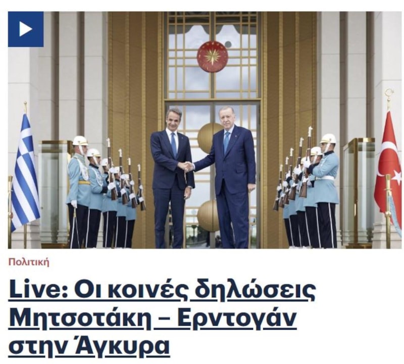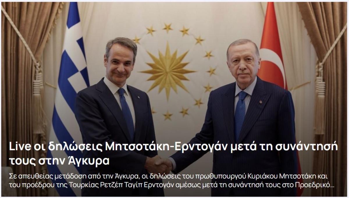 ERT, Erdoğan ile Miçotakis'in Ankara'da bir araya geldiğini okurlarına duyurdu.