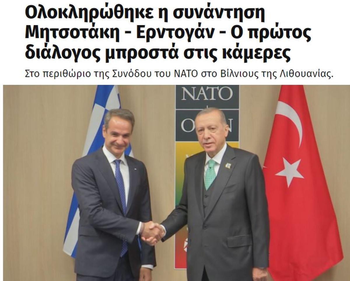 Erdoğan ile Miçotakis arasında heyetlerin katılımıyla yapılan görüşmenin 1,5 yıl aradan sonra bir ilk olduğunu aktaran Ta Nea gazetesinin haberinde şöyle denildi: