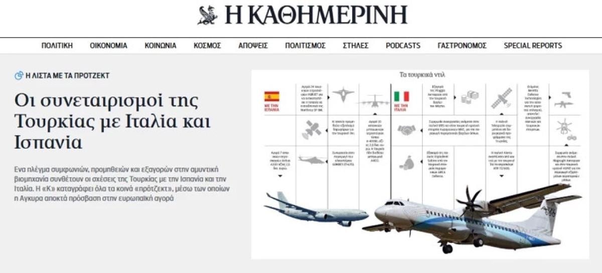 Kathimerini, Ankara'nın Avrupa'nın en büyük devletleriyle imzaladığı savunma anlaşmalarını tek tek sıraladı. Türkiye'nin İspanya ve İtalya ile özellikle savunma sanayisi alanında kurduğu yakın ilişkiler, Atina'da endişe yarattı.