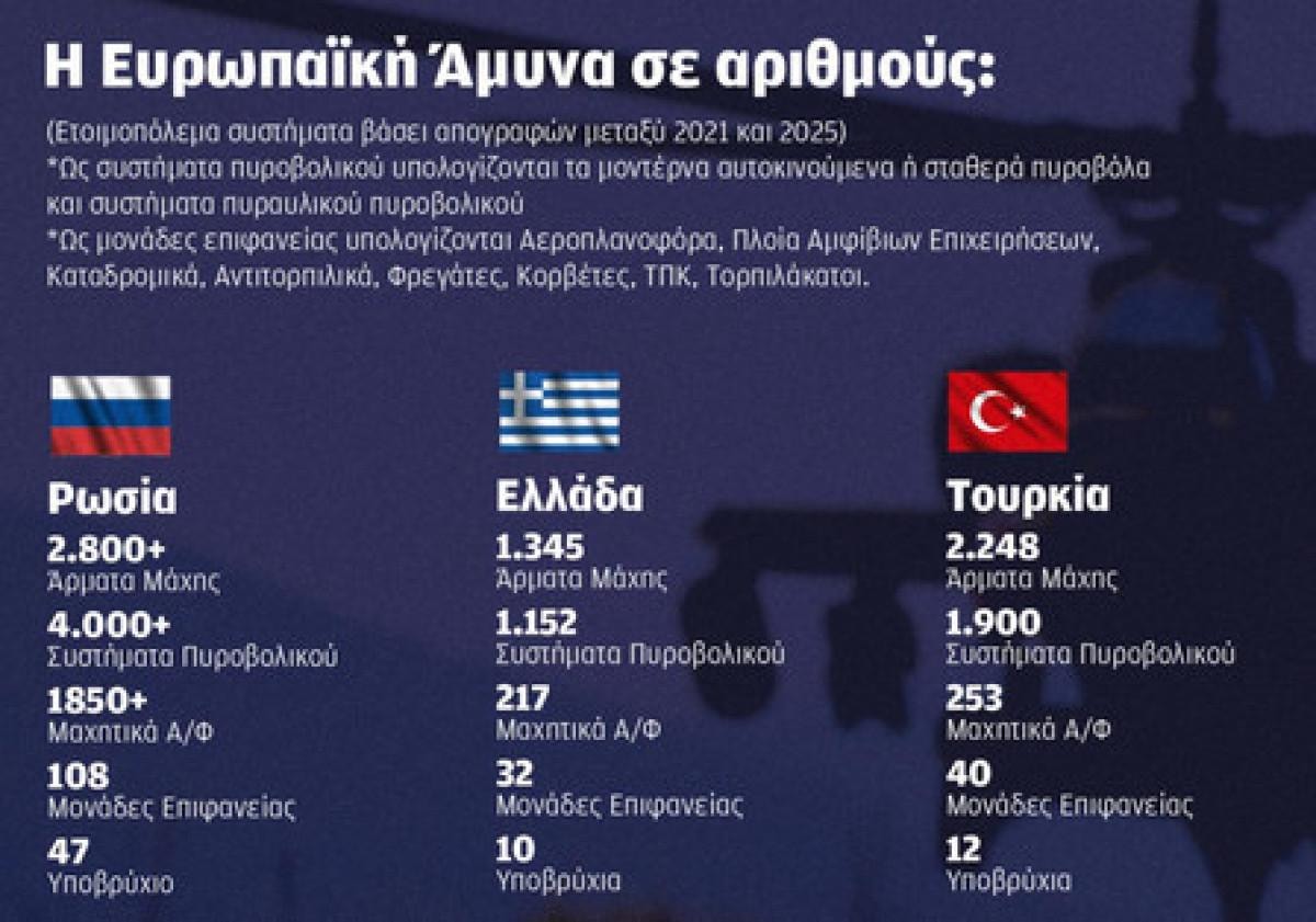 Yunan basını 2021 ve 2025 yılları arasında Avrupa ülkeleri arasında en güçlü ve en çok ekipmanı bulunduran ülkeleri açıkladı.