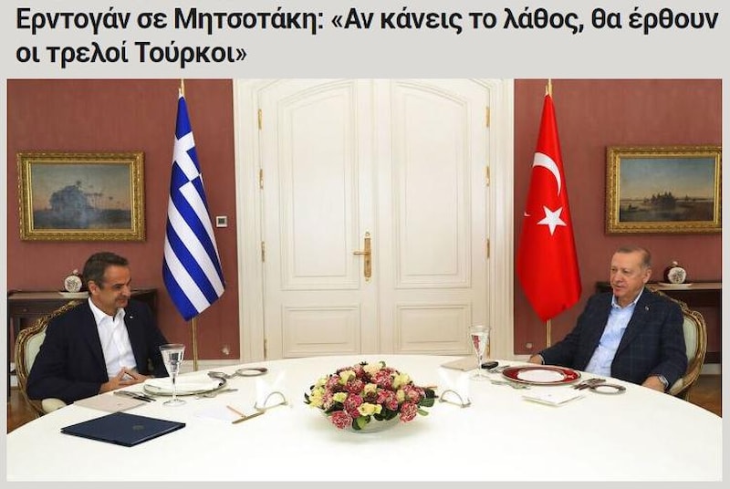 Erdoğan’ın ifadeleri Yunan medyasında geniş yankı uyandırdı. CNN Yunanistan, “Erdoğan’dan Miçotakis’e: Yanlış bir şey yaparsan çılgın Türkler gelecek” başlığına yer verdi.