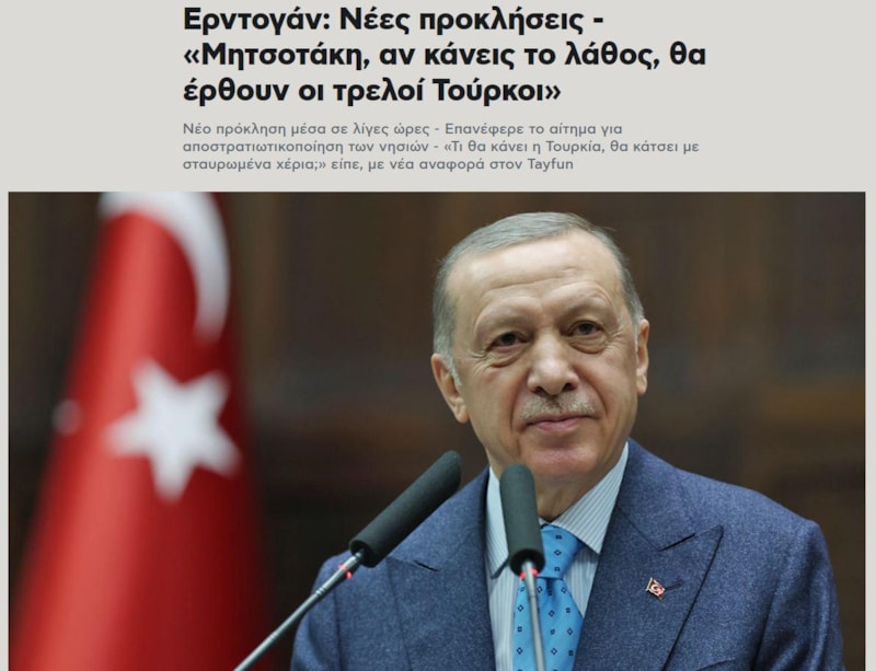 Haberde, Cumhurbaşkanı Erdoğan’ın Yunanistan’a ve ülkenin Başbakanı Miçotakis’e yönelik tehditlerde bulunduğu belirtildi ve Erdoğan’ın ilgili ifadeleri aktarıldı: