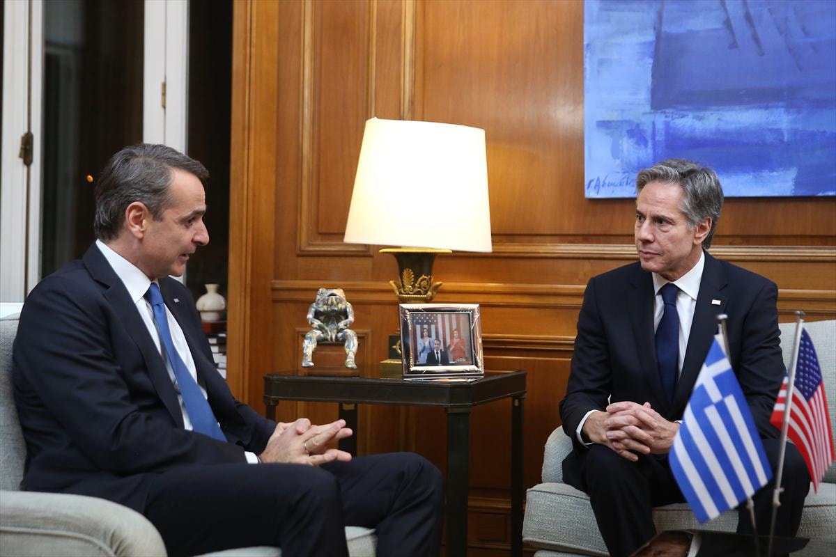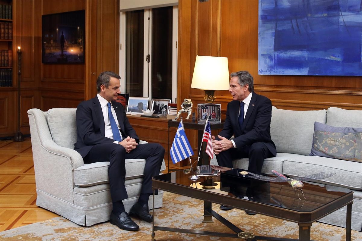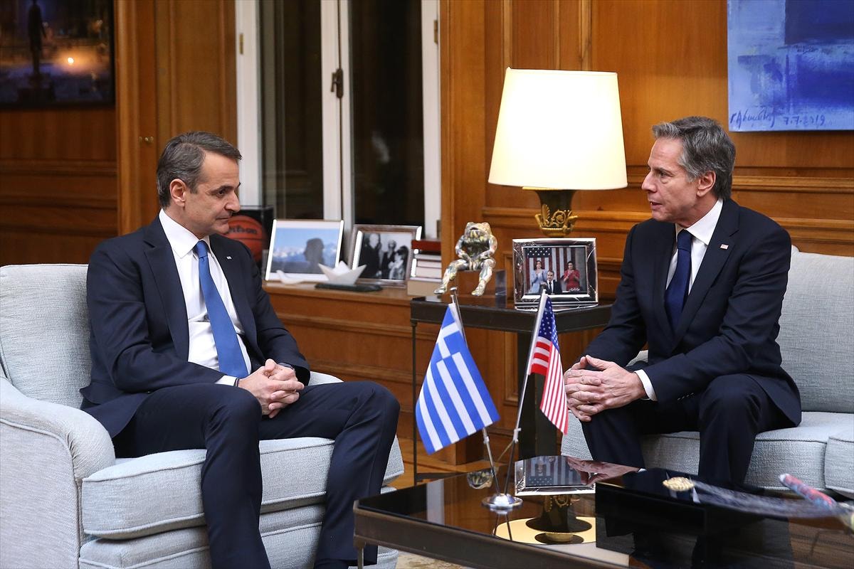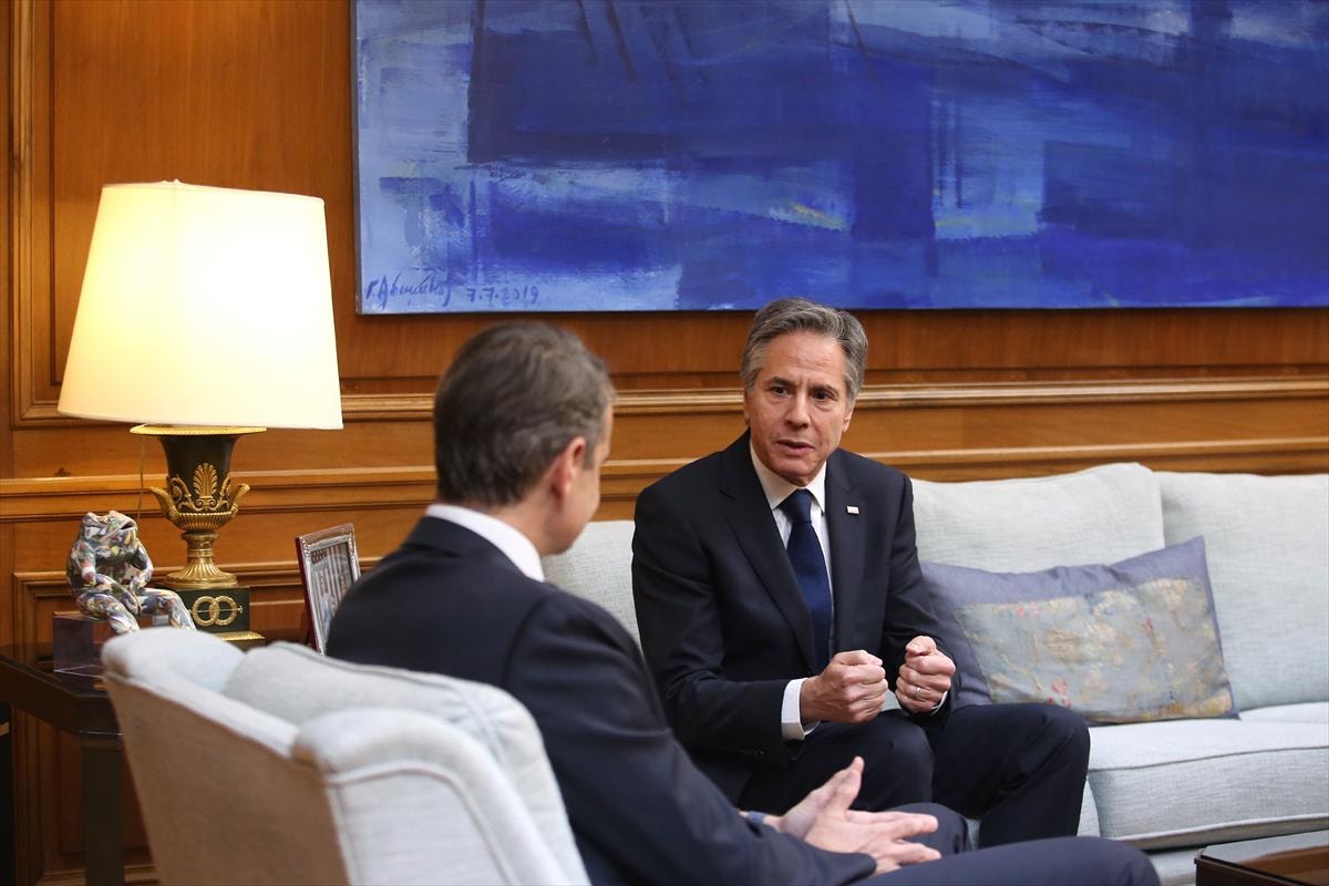 Blinken burada, Yunanistan Başbakanı Kiryakos Miçotakis ile görüştü.