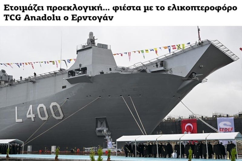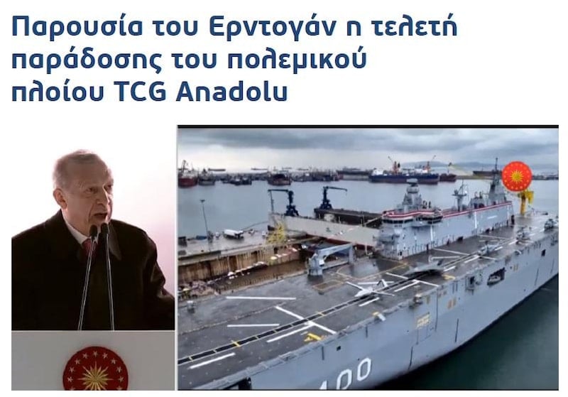 Yunan devlet televizyonu ERT, TCG Anadolu'nun, helikopterlerin ve İHA'ların iniş kalkış yapabildikleri türünün ilk savaş gemisi olduğunu yazdı.
