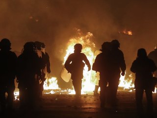 Atina'da, öğleden bu yana aralıklarla düzenlenen gösterilere karşı alınan olağanüstü güvenlik önlemleri kapsamında polis helikopterleri ve insansız hava araçları gün boyunca gözetleme yaptı.