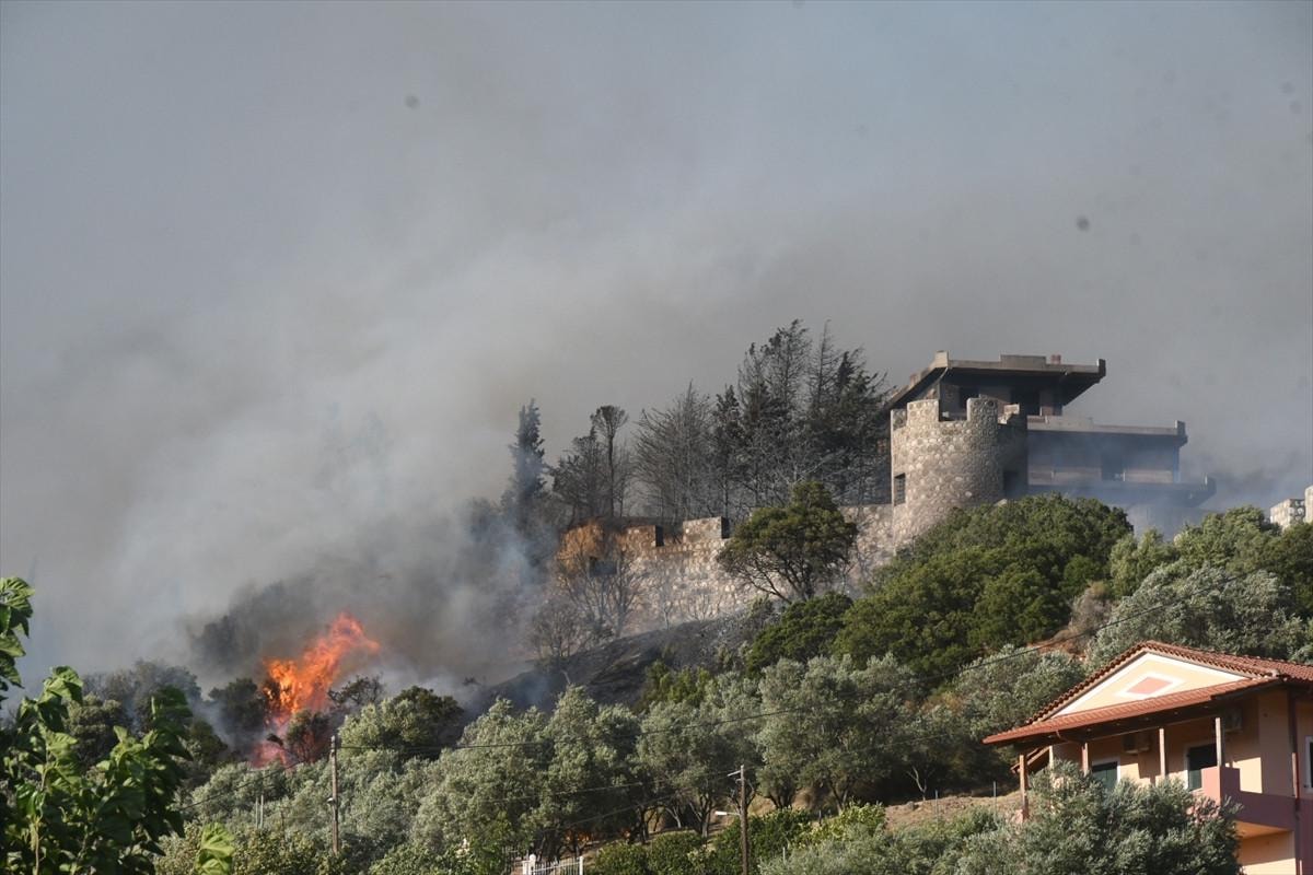 Sakız Adası'nın kuzeybatısındaki köyler tamamen tahliye edilirken yangın tarım arazilerinde, ormanlık alanlarda, çiftliklerde, depolarda ve araçlarda ağır hasara yol açtı. Sahil Güvenlik ve özel tekneler, Limnia bölgesinden yaklaşık 40 kişiyi deniz yoluyla tahliye etti.