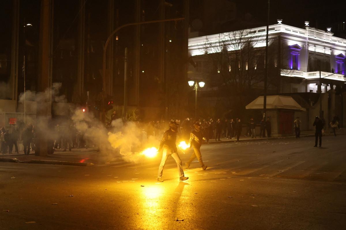 Eylemciler parlamento binası önünde molotofkokteyli atarken polis, biber gazıyla müdahale etti.