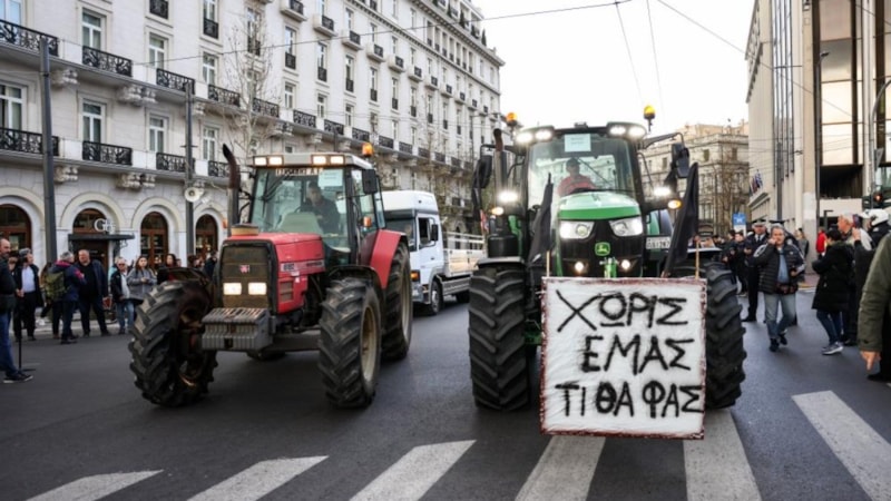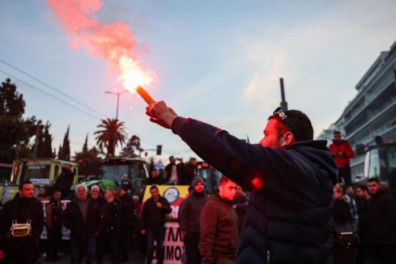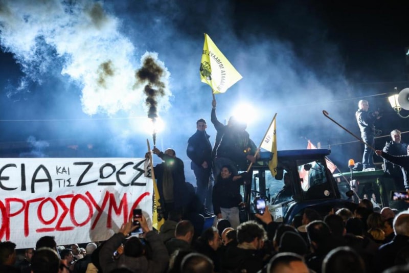 Sintagma Meydanı'nda toplanan çiftçiler traktörlerini parlamento binası önüne park ederek yüksek enerji ve üretim maliyetlerinin düşürülmesi, vergi yüklerinin hafifletilmesi ve doğal afetlerden gördükleri zararın karşılanması gibi taleplerde bulundu.