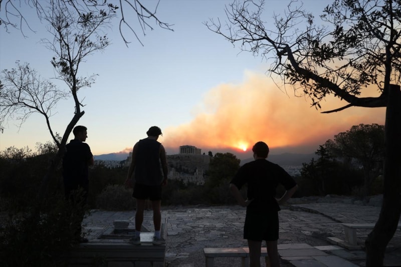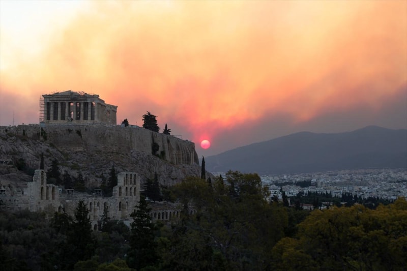 Atina'nın doğusunda bulunan Varnava bölgesinde öğleden sonra başlayan yangın nedeniyle Parthenon tapınağının üzerinden dumanlar yükseldi.