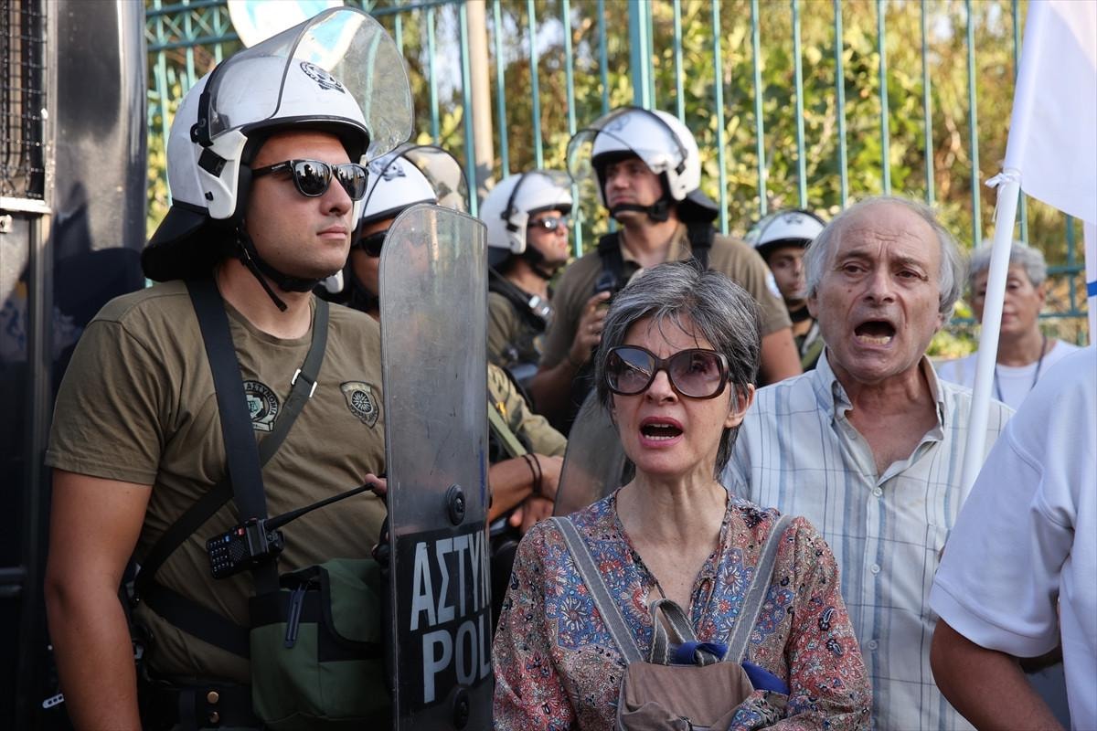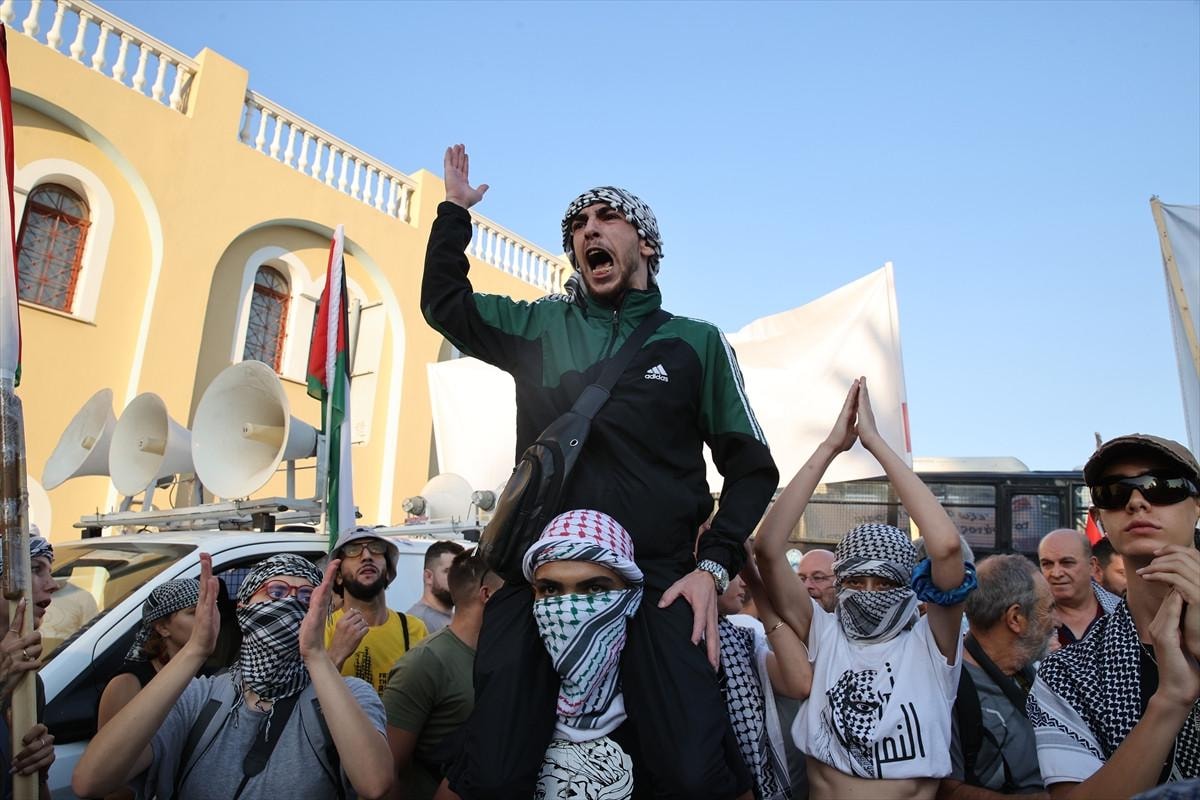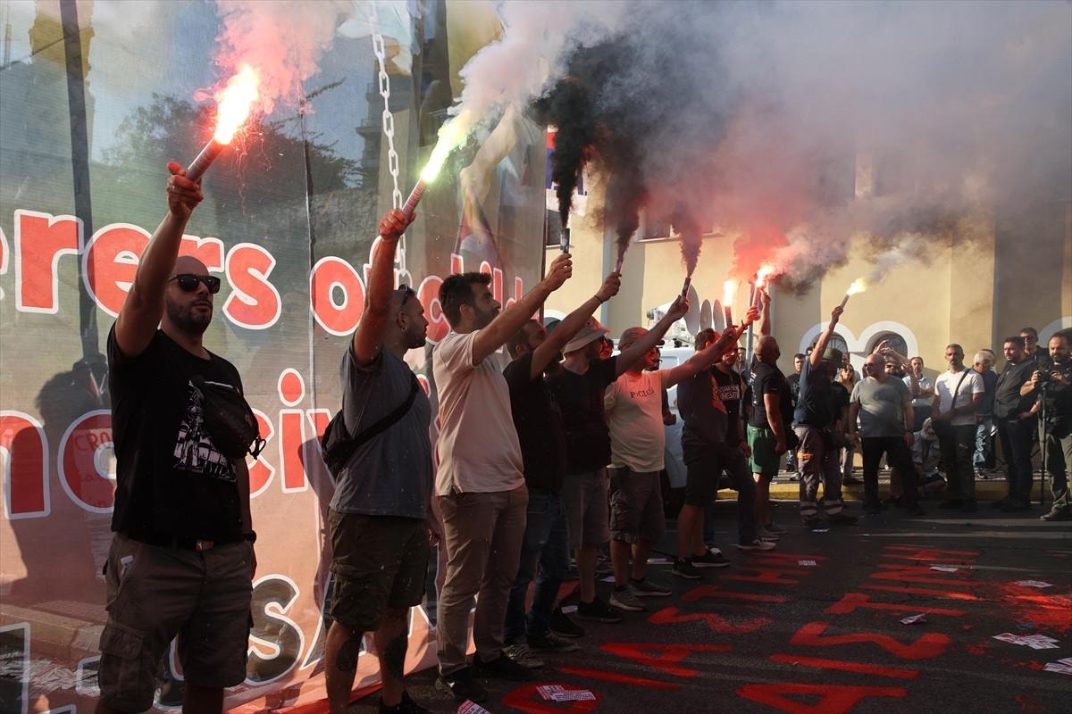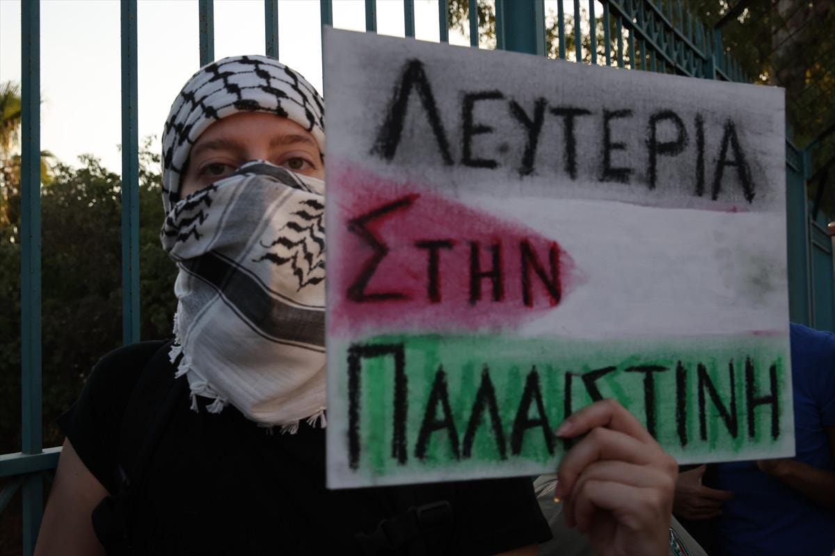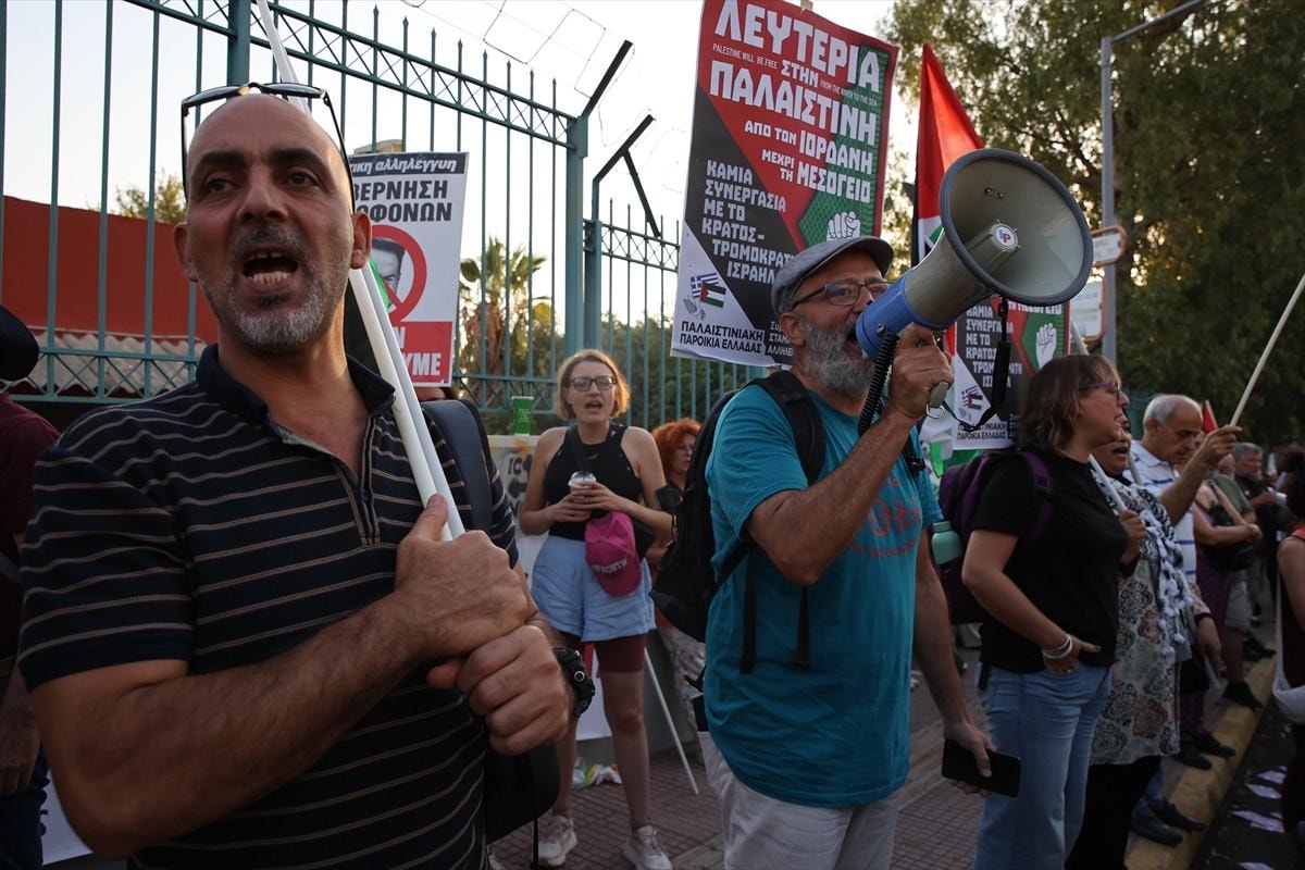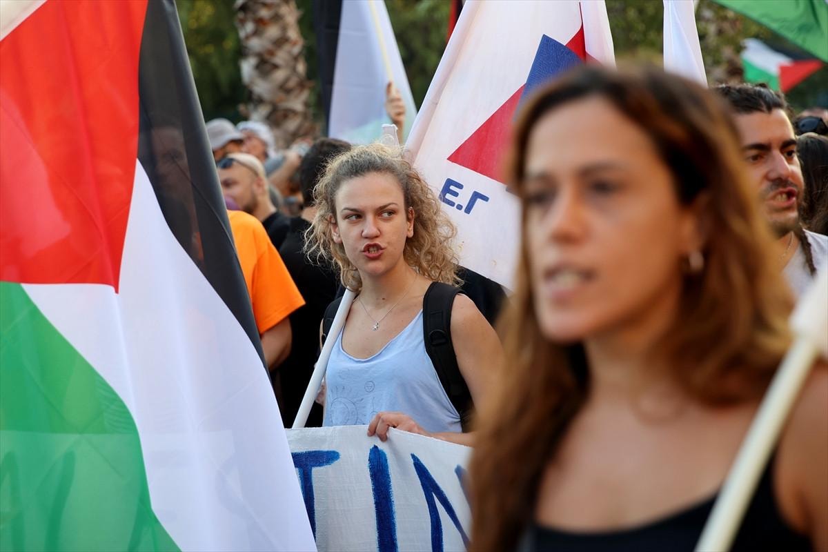 Yunanistan Komünist Partisi (KKE), çeşitli sol gruplar, sendikalar ile Filistin destekçisi aktivistlerden oluşan grup, İsrail'e ait gemideki yolcuların karaya çıkmasını engellemek amacıyla Pire Limanı'nda bir araya geldi.