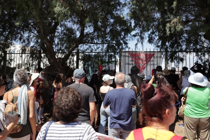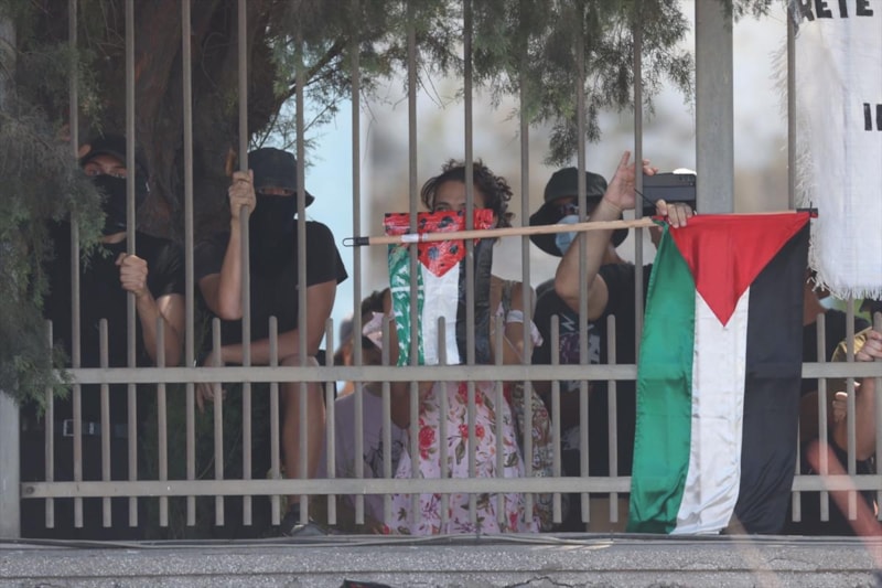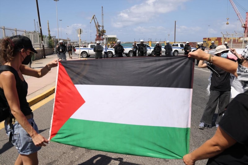 Buna rağmen liman girişine ulaşan bazı göstericiler Filistin lehine sloganlar attı.