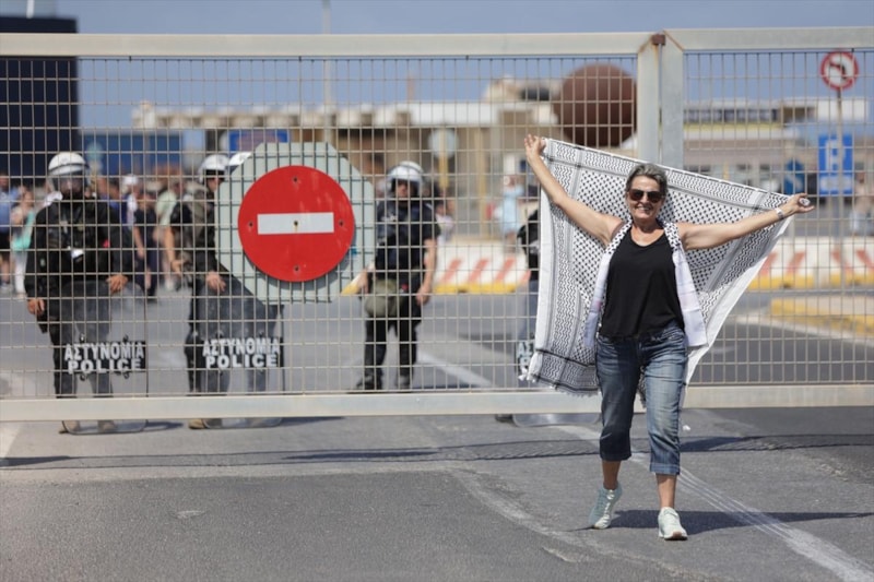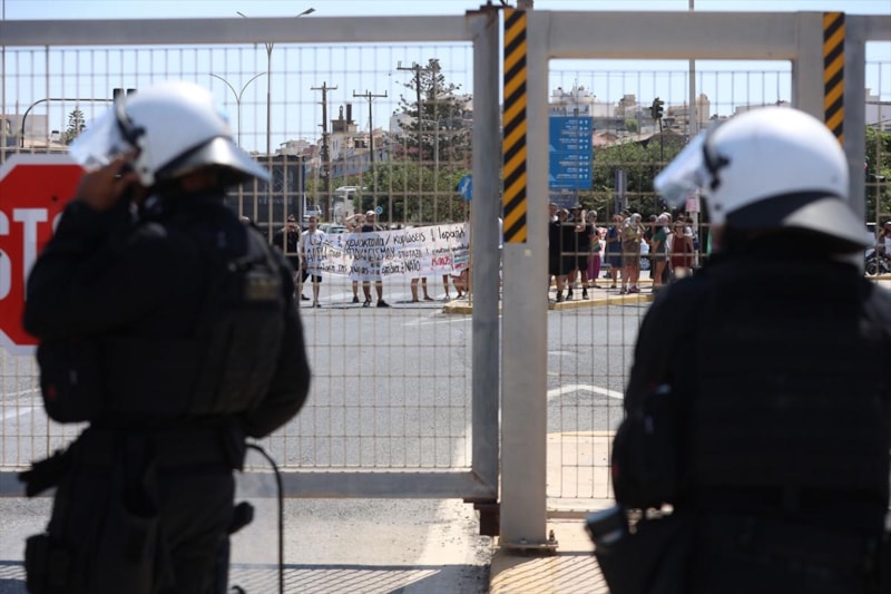 Heraklion Limanı çevresinde geniş güvenlik önlemleri alınırken, emniyet güçleri limanın giriş ve çıkışlarını zaman zaman kapatarak göstericilerin ilerlemesini engelledi.