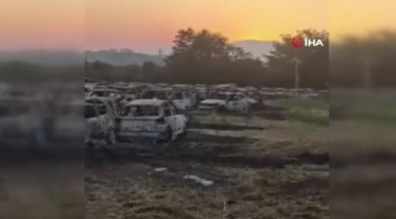 Açık alandaki araçların çoğunun yandığı ve yaklaşık 550 aracın kullanılamaz hale geldiği ifade edildi.