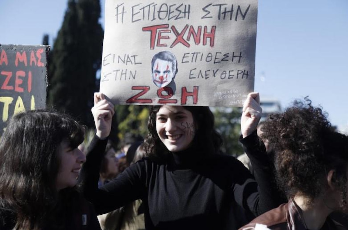 Yunanistan'da sanat okulu diplomalarının lise dengi kabul edilmesi yönündeki cumhurbaşkanlığı kararnamesi protestolara neden oldu..