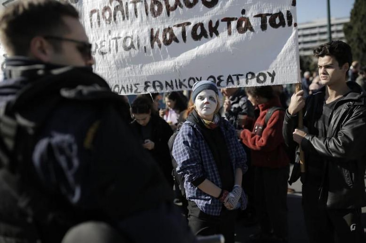 Kararnamenin geri çekilmesini talep eden sanatçılar, dün ilan ettikleri 48 saatlik grevin ikinci gününde başkent Atina’daki Syntagma Meydanı'nda bir araya geldi.