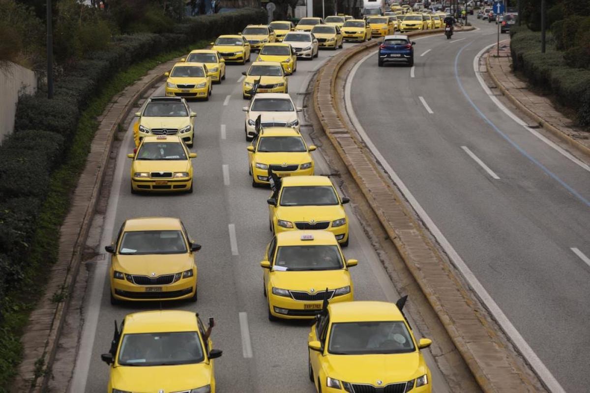 Başkent Atina'da 200’den fazla taksi konvoy yaparak, Ulaştırma Bakanlığı önünde eylem yaptı.