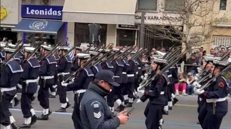 Yunanistan Deniz Kuvvetleri Astsubay Okulu'nun bir bölümünün 25 Mart'ta Atina'da gerçekleşen askeri geçit töreni sırasında attığı küfürlü slogan infiale yol açmıştı.