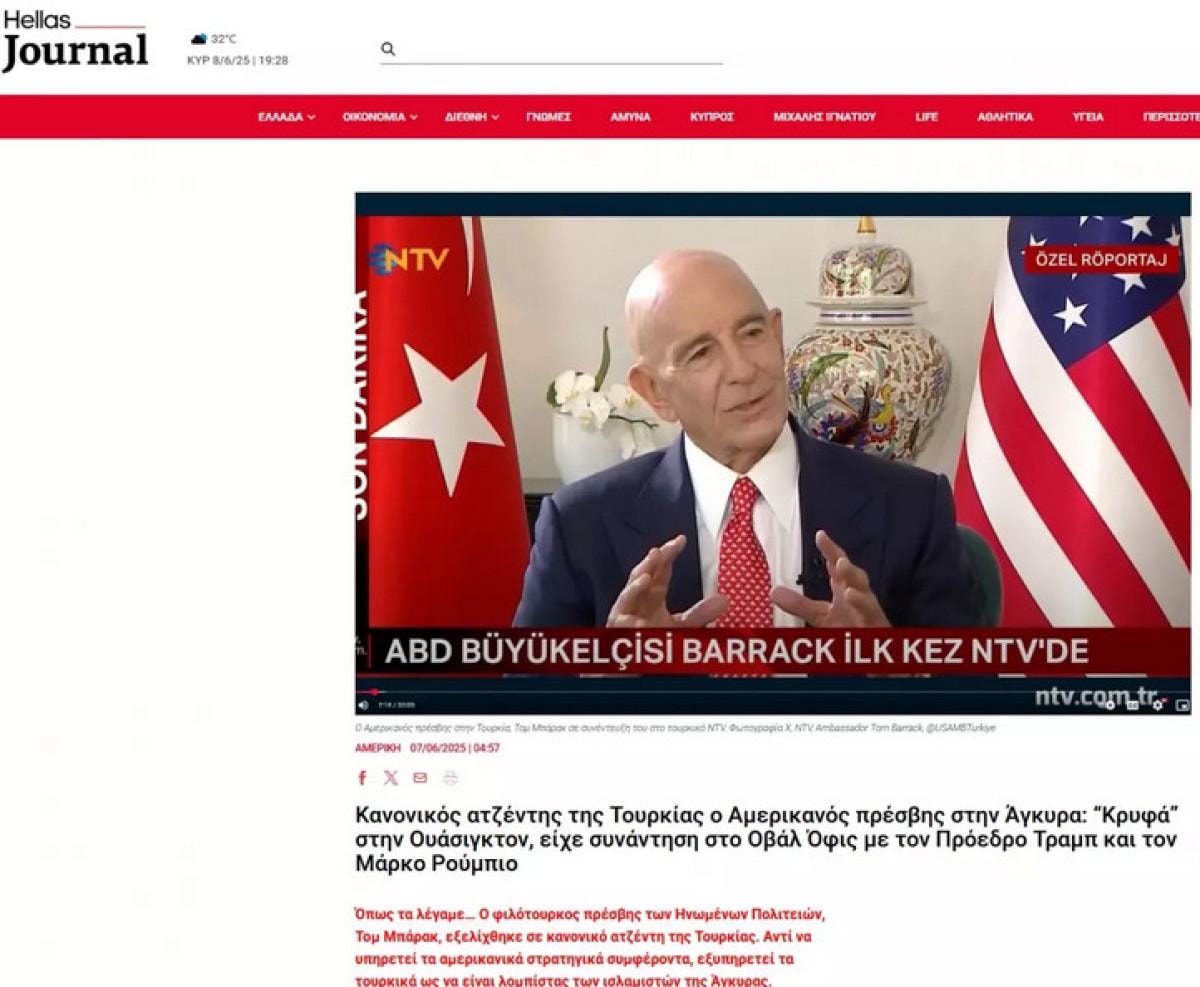 Yunanistan merkezli Hellas Journal’ın haberinde, Barrack’ın Washington’a yaptığı “gizli” ziyaretin ardından Oval Ofis’te ABD Başkanı Donald Trump ile Dışişleri Bakanı Marco Rubio ile gerçekleştirdiği görüşme irdelendi.