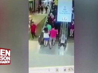 Üzerinde kim varsa aşağı savrulduğu anlar, güvenlik kamerasına yansıdı. Yürüyen merdivene aşırı ağırlık binerse