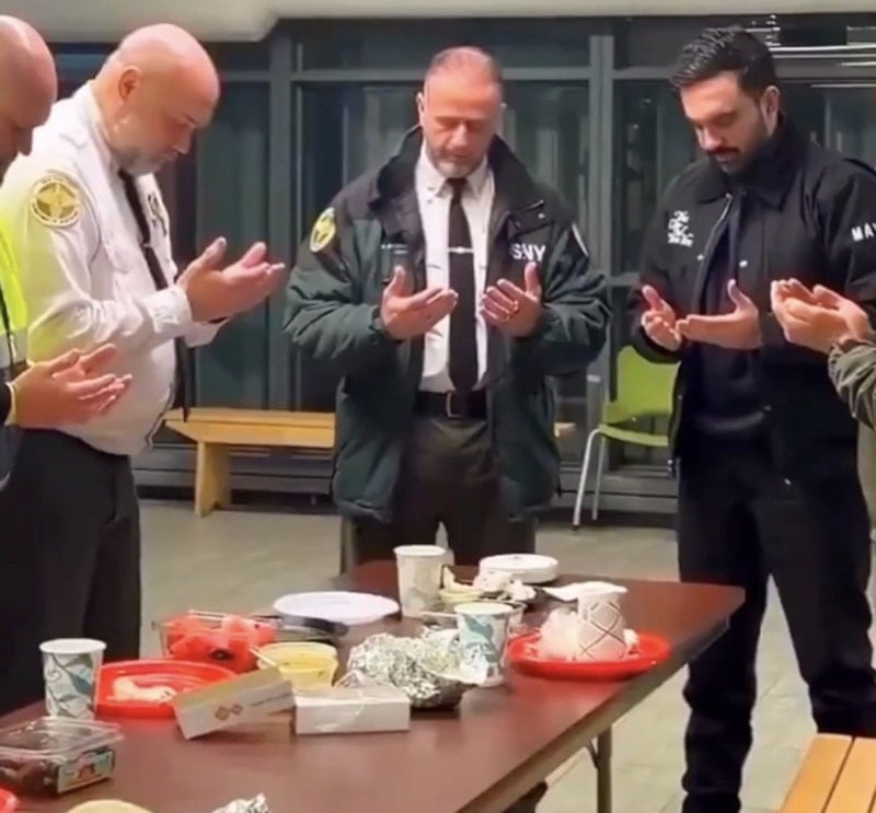 Sahura başlamadan önce polis memurlarıyla birlikte dua eden Mamdani, akabinde de polislerle sahurunu yaptı.