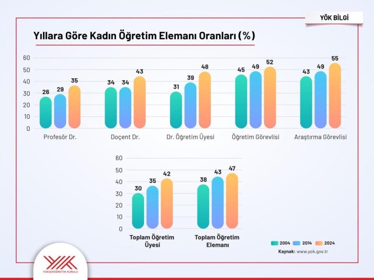 Türkiye'deki üniversitelerde toplam 184 bin 21 öğretim elemanı görev yapıyor. Bunlardan 97 bin 532'si erkek, 86 bin 489'u kadın. Buna göre kadın akademisyenlerin oranı yüzde 47'ye çıktı. Bu oranla akademideki kadın oranı en yüksek seviyeye ulaşmış oldu.