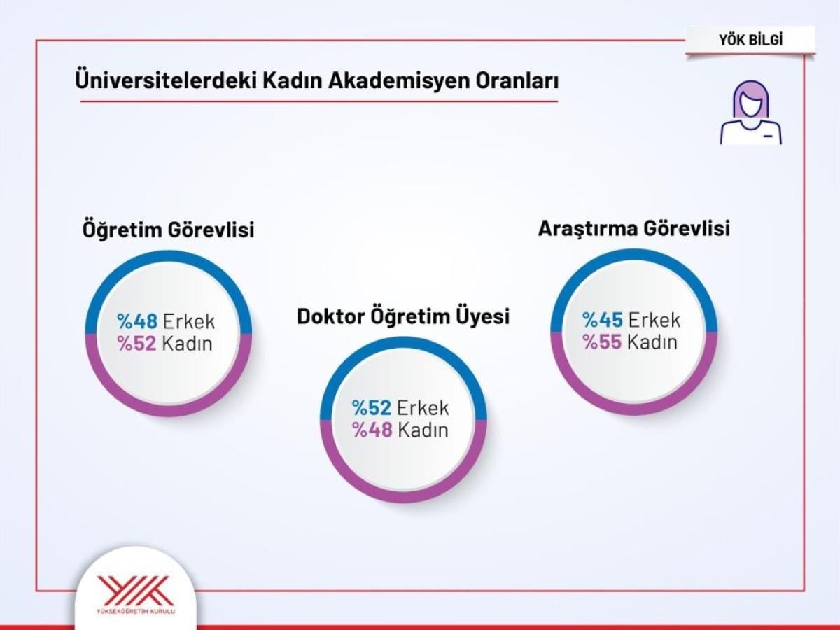 Akademide kadın araştırma görevlileri ile kadın öğretim görevlisi sayısı da erkekleri geride bıraktı. Toplam araştırma görevlisinin yüzde 55'i, öğretim görevlisi kadrosunun ise yüzde 52'si kadınlardan oluşuyor.