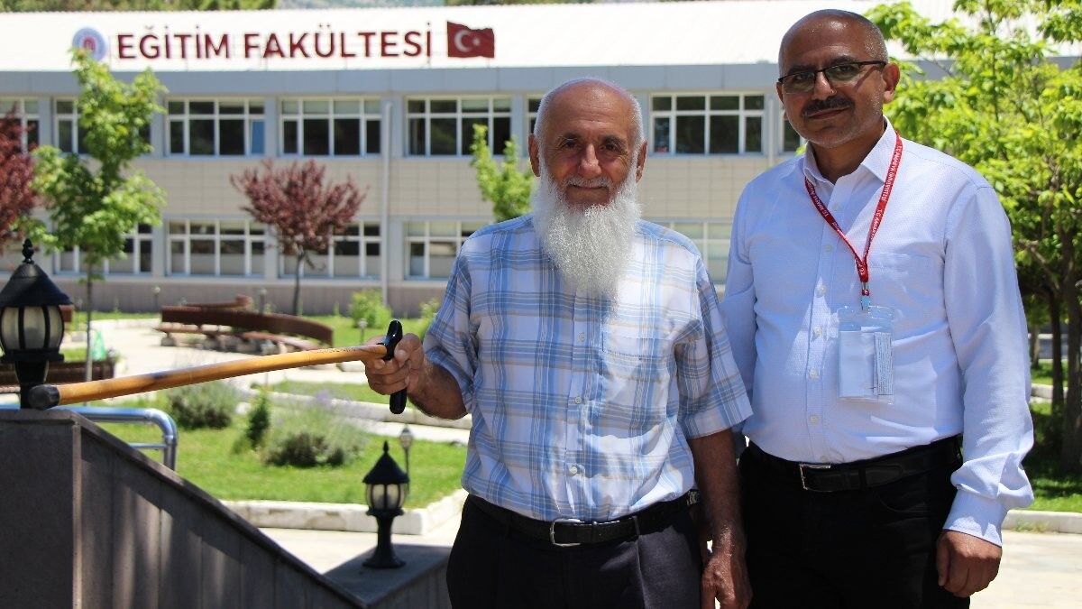 Sınava girmek için Amasya Üniversitesi Eğitim Fakültesi'ne giden Yaşar Aktaş, görevlileri de şaşırttı.