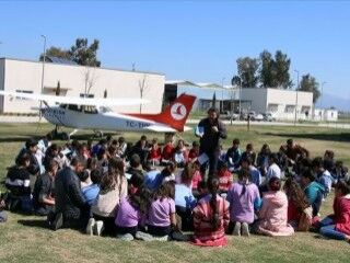 Öğrenciler, burada kartondan harflerle "Okumak çok güzel" yazdı. Öğrenciler daha sonra akademiye ait simülatörde, pilot koltuğuna oturarak uçuş eğitimi aldı. Eğitim sırasında öğrenciler, eğlenceli ve heyecanlı anlar yaşadı.