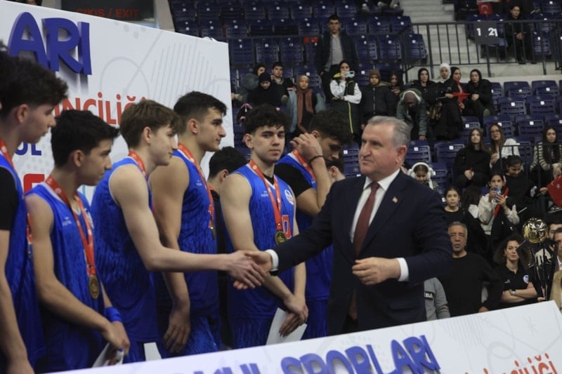 Okul Sporları Basketbol Gençler Türkiye Birinciliği Erkekler Finali heyecanlı anlara sahne olurken, maçı izleyen Gençlik ve Spor Bakanı Dr. Osman Aşkın Bak, Türk sporunun zirveye ilerlediğini belirtti.
