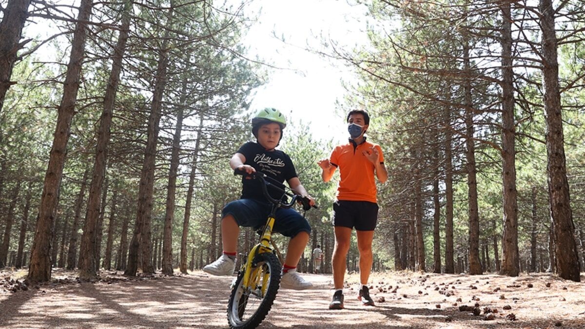 Bunun üzerine Bisiklet Akademisi'ni kuran Erdoğan, meslektaşlarıyla başkentin ormanlarında verdiği eğitimlerle çocuklara hem bisiklet sürmeyi öğretiyor hem de doğayı keşfetmelerini sağlıyor.