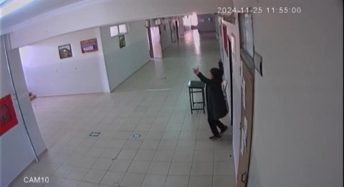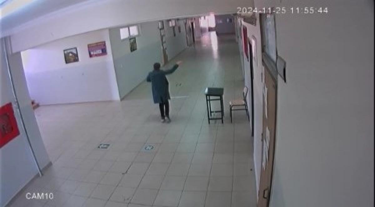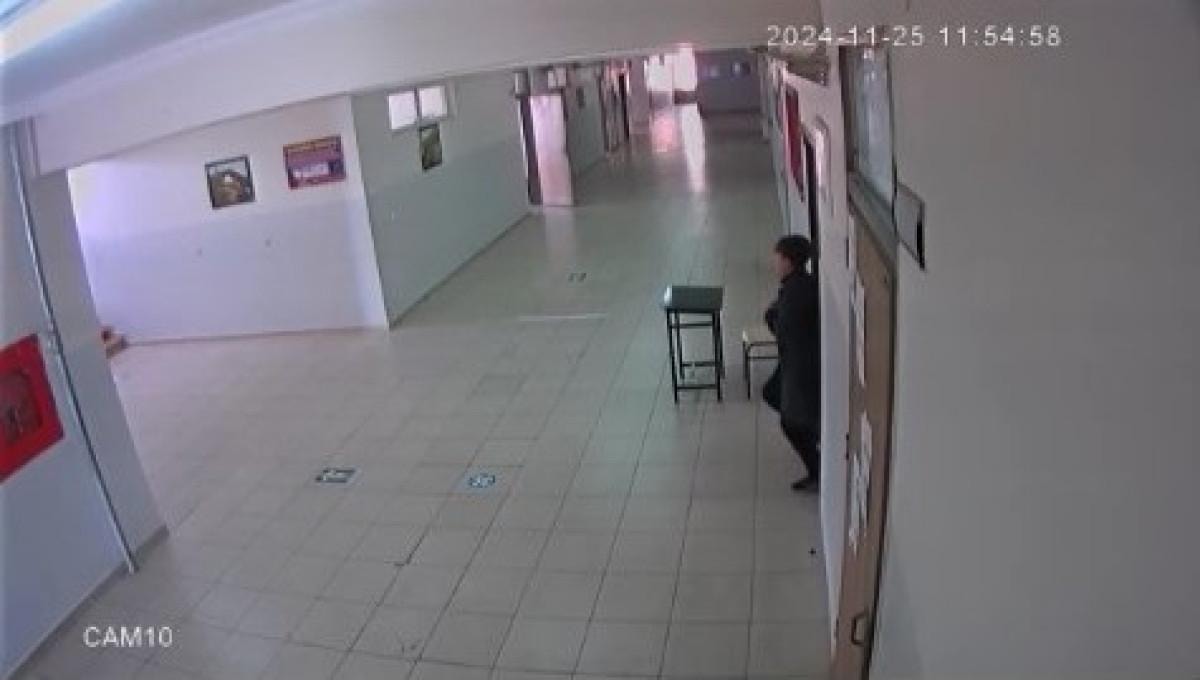 Lisede nöbetçi erkek öğrenci, koridorda tek başına olduğu sırada halay çekti.