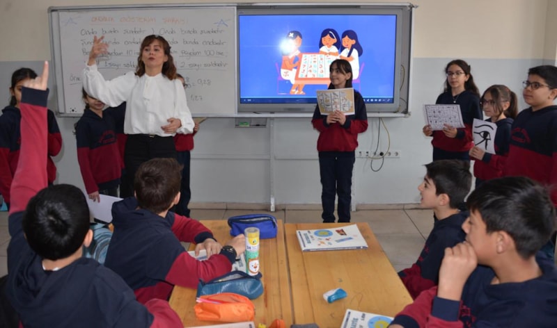 Türkiye Yüzyılı Maarif Modeli'nin 1, 5 ve 9'uncu sınıflarda uygulandığını hatırlatan Özentürk, "5'inci sınıflara derse girdiğim için bu modeli uyguluyorum. Öğrencileri merkeze alan grup çalışmalarının yoğunlukta olduğu dijital etkinlikleri kullandığımız bir ders olarak matematik derslerini işliyorum.