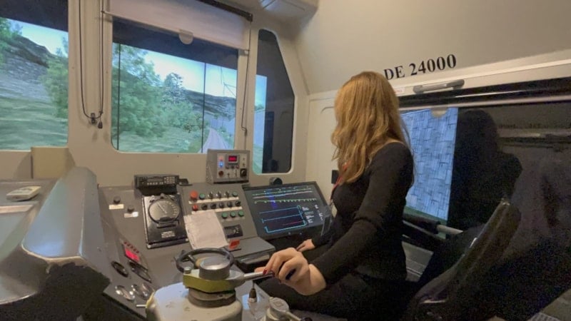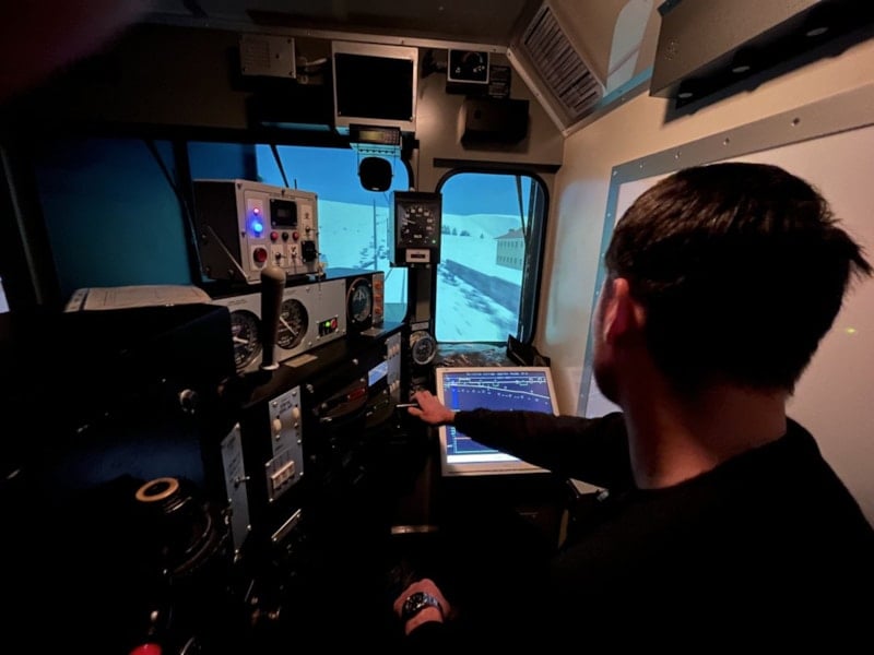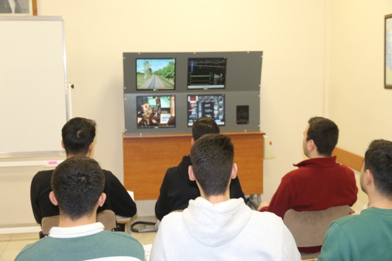 Demir yolu parkımızda aktif kullanılan DE33000 dizel-elektrik lokomotifimizin birebir simülasyonu mevcut. Öğrencilerimiz teorik bilgileri aldıktan sonra simülatör aşamasında kendilerini gerçek bir trenin içindeymiş gibi hissediyor. Trenin hareketi, yük ve yolcu vagonlarının idaresi gibi görevleri gerçeğe en yakın haliyle öğretiyoruz.