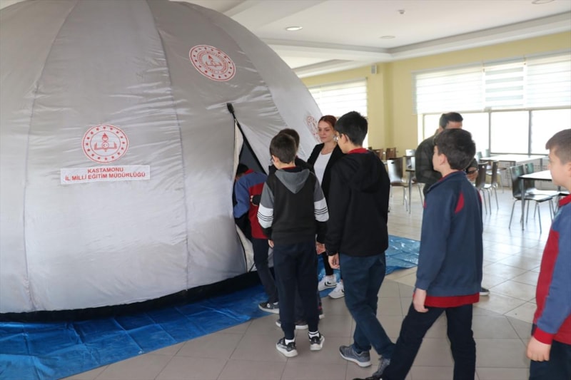 Kastamonu İl Milli Eğitim Müdürlüğü, 'Türkiye Yüzyılı'nda yeni astronotlar için Kastamonu'nun katılımı' projesi çerçevesinde Şehit Mehmet Yılmaz İmam Hatip Ortaokulu'nda bir planetaryum kurdu.