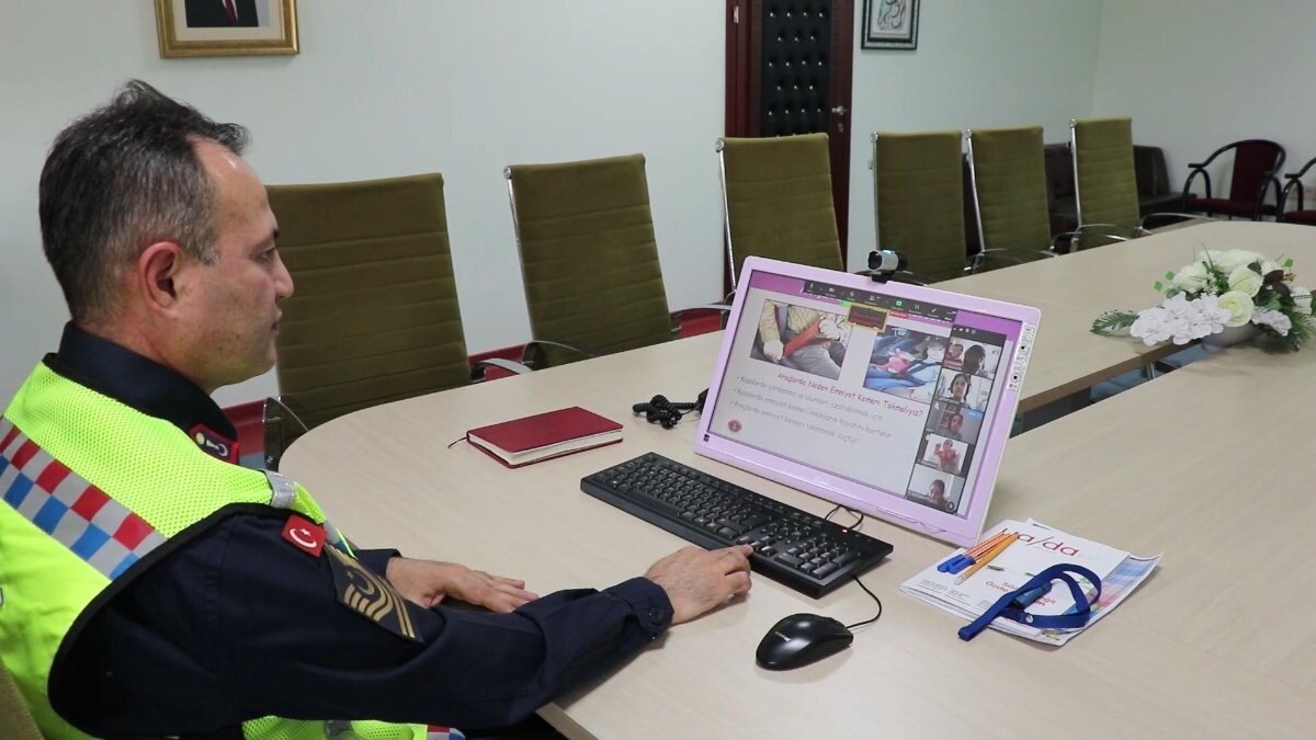 Kentte jandarma tarafından ilk ve ortaokul çağındaki öğrencilere 'EBA' üzerinden trafik eğitimi veriliyor.