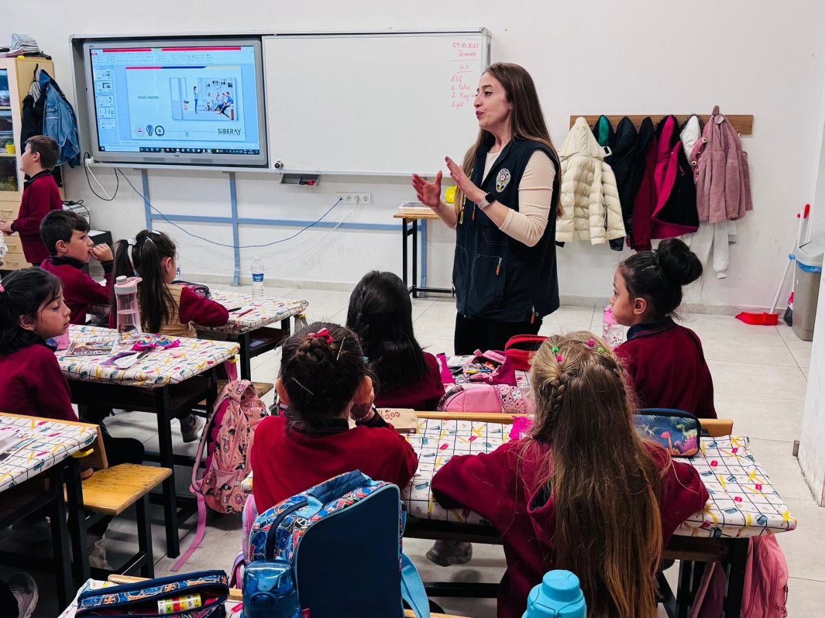 Bu kapsamda SİBERAY ekibi, Ümran Aygen İlkokulu’nu ziyaret ederek öğrencilere teknoloji bağımlılığı, siber güvenlik ve güvenli internet kullanımı konularında eğitim verdi.